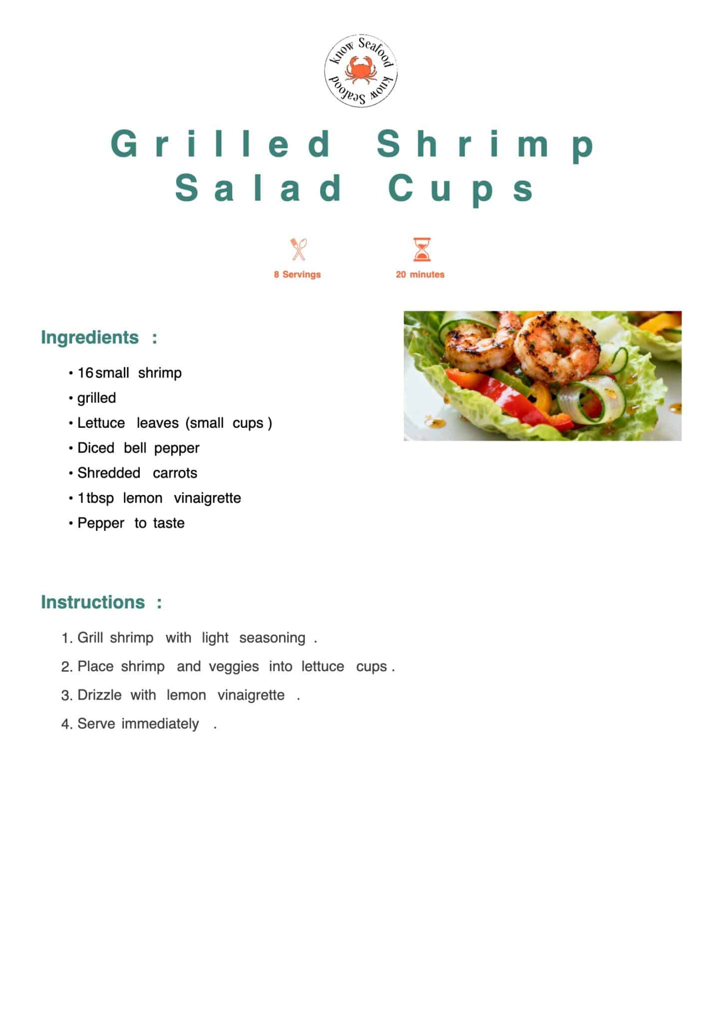 Lettuce cups filled with grilled shrimp and fresh vegetables. Light dressing adds just enough flavor.