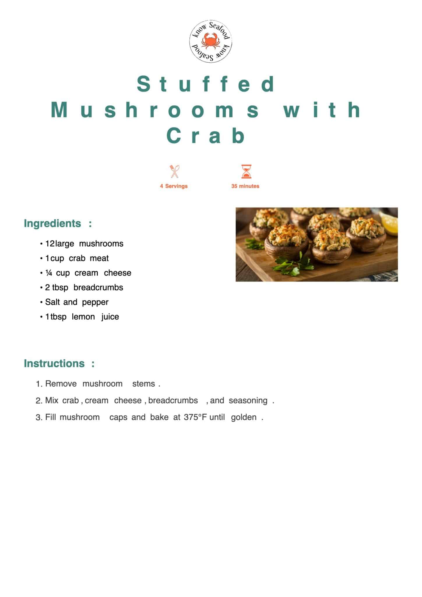 Large mushroom caps filled with creamy crab mixture and baked until golden and bubbly on top, letting the mushrooms add earthy flavor to the sweet crab meat.